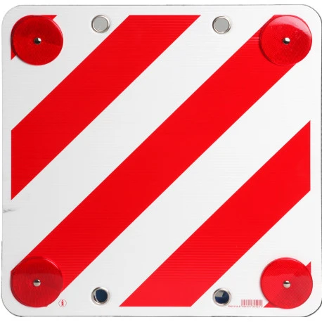 Cartello carichi sporgenti in materiale plastico con 4 retroriflettori. Non omologato in Italia.