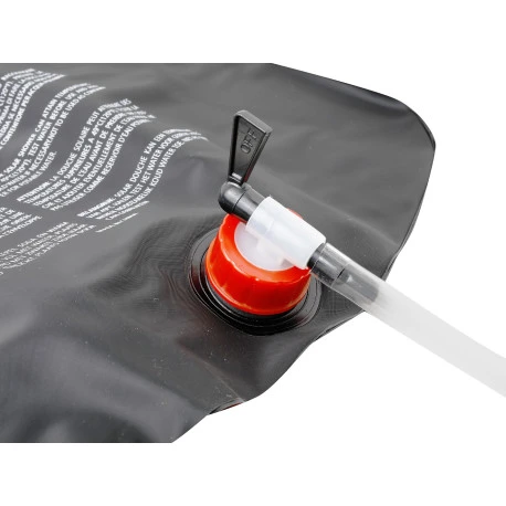 Doccia solare in PVC atossico con flusso regolabile. Completa di maniglia per appenderla.