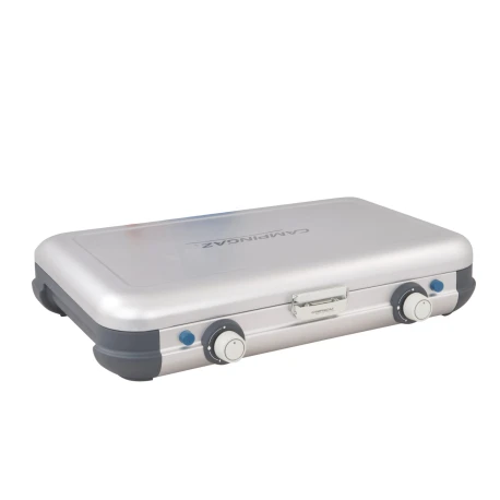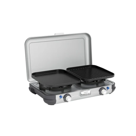 Il nuovo fornello Campingaz Camping Kitchen® 2 Grill & Go CV si presenta compatto e versatile, per cucinare e grigliare. Grazie alla sua combinazione di 2 bruciatori con 2 griglie di cottura intercambiabili e placncha è in grado di soddisfare tutte le esigenze per la praparazione dei cibi.