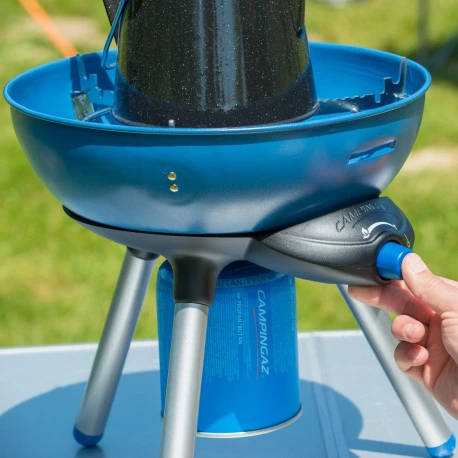 Il fornello Campingaz Party Grill® 200 offre due comode opzioni di cottura tra cui: griglia o fiamma viva. Grazie alle sue gambe smontabili ed al coperchio con gancio di sicurezza, è facile da trasportare e da riporre. Party Grill® funziona con bombole Campingaz. Accensione Piezo elettrica.