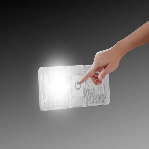Plafoniera Brunner con resistente involucro in ABS e lente PP.