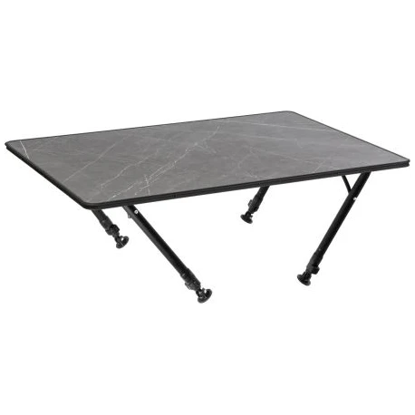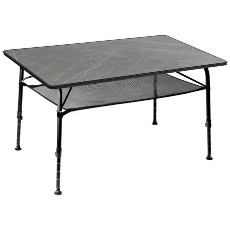 Tavolo da campeggio e da esterno di prima qualità con meccanismo di ripiegamento di nuova concezione e piano uoltraleggero con profilo perimetrale in alluminio. Grazie ad un binario di scorrimento centrale, il robusto telaio el tavolo può essere montato e smontato in pochi secondi e senza difficoltà.