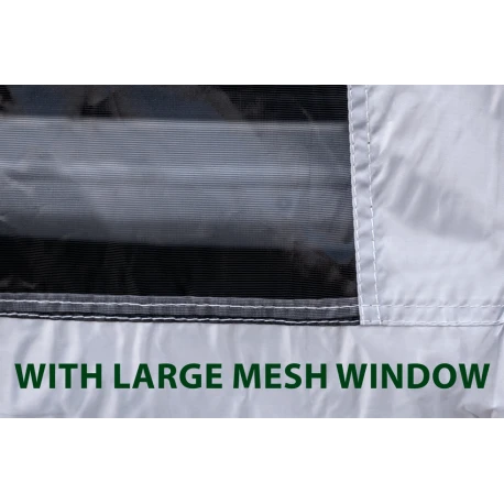 – La parete anteriore può essere alzata a tettuccio parasole, con 2 pali di sostegno inclusi.